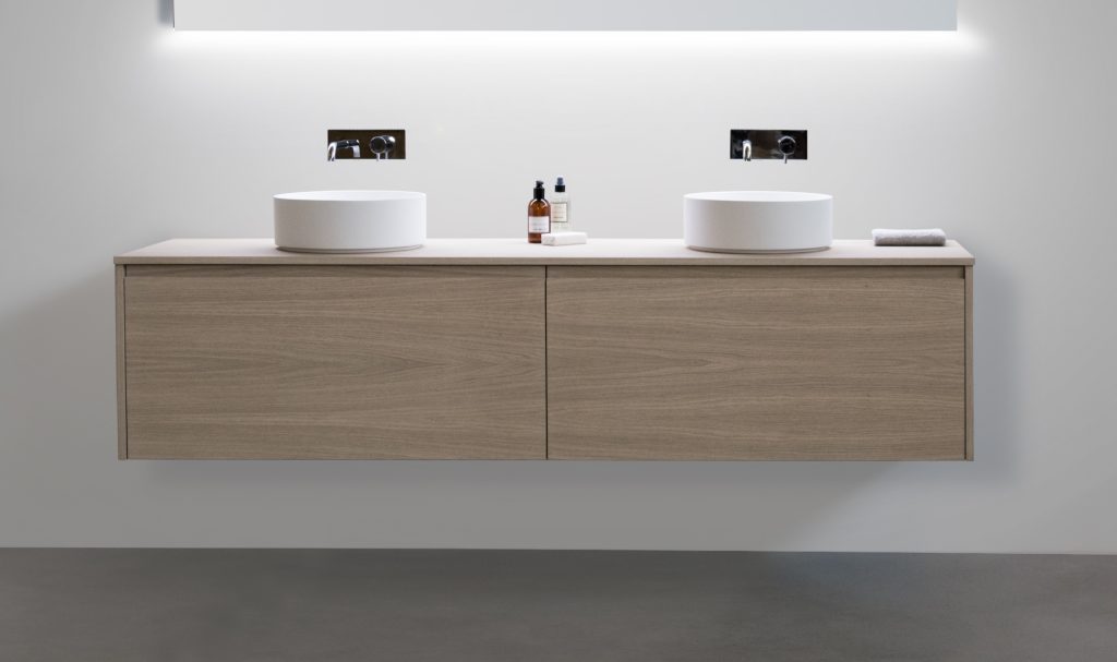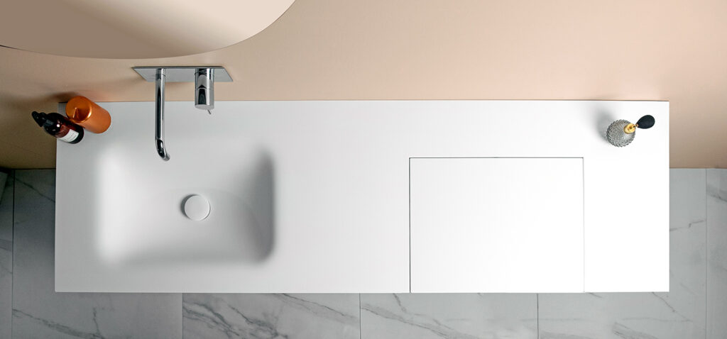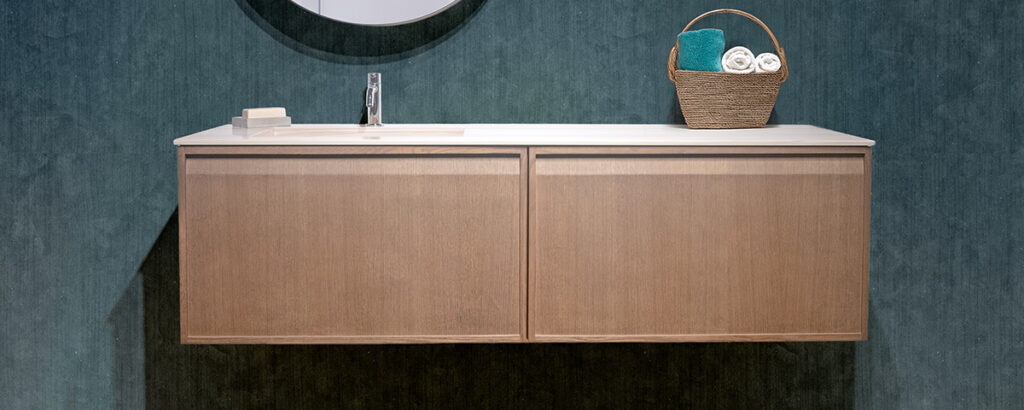 Quadro es el sistema de mueble de baño que equilibra precisión formal y libertad creativa. Su diseño parte de una lógica modular que se adapta a diferentes espacios, pero lo que lo hace único es su enmarcado integrado con el tirador, que define visualmente cada frente y permite una personalización absoluta en tamaño y configuración.