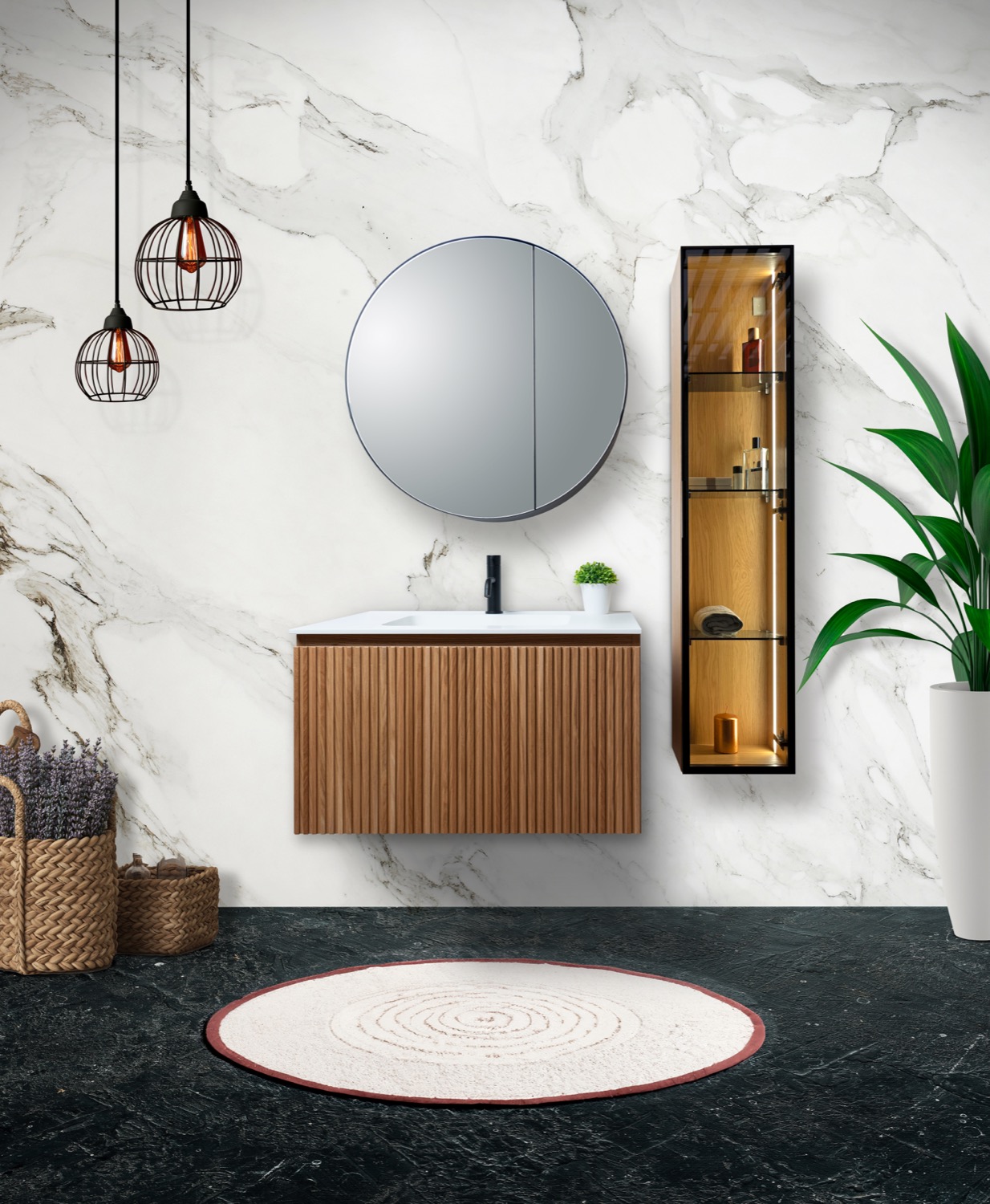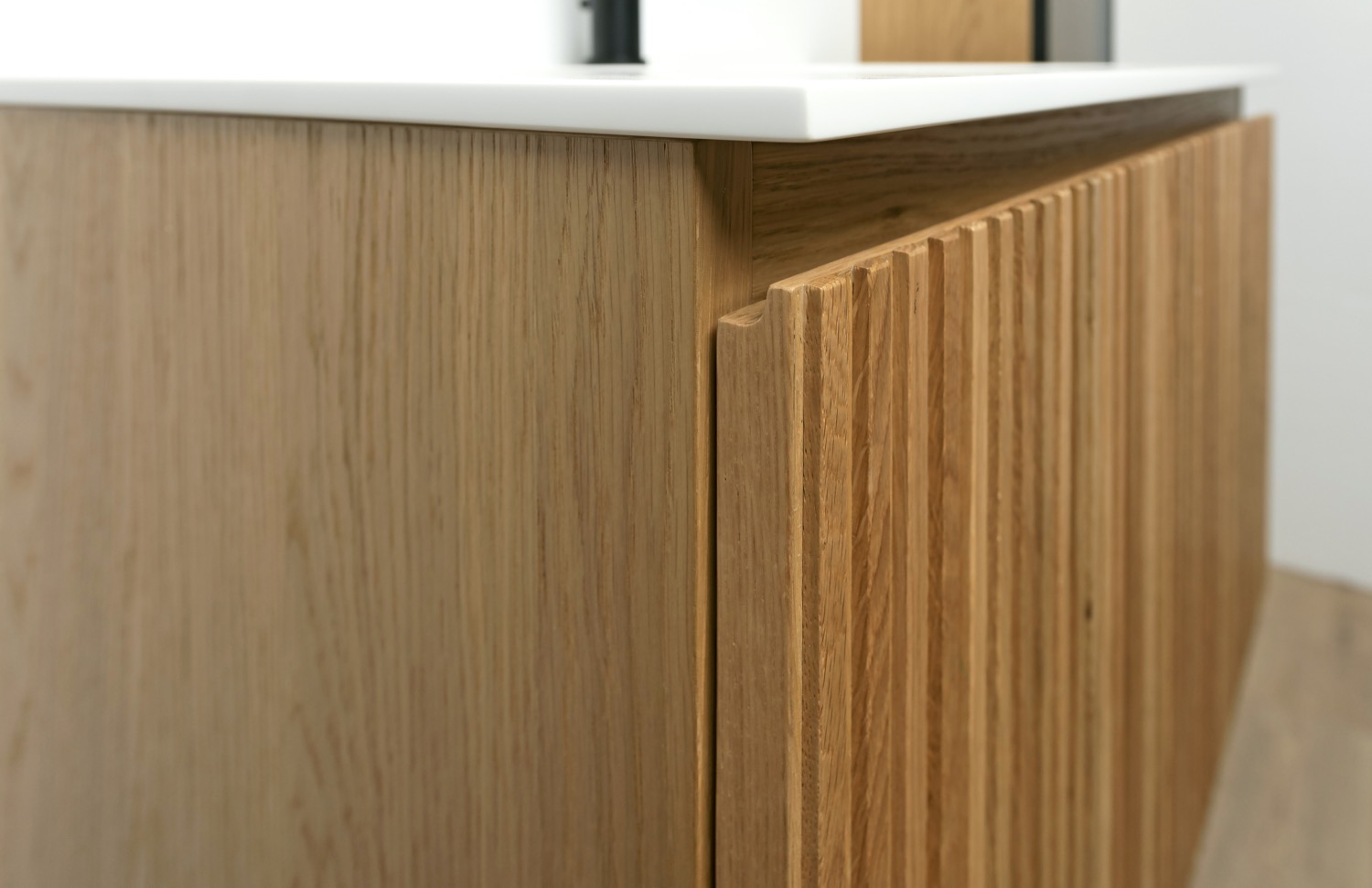 El rasgo más distintivo de Soho Paralel son sus frentes con estriado vertical, que aportan textura, profundidad y una identidad visual elegante. Este detalle convierte cada pieza en un elemento decorativo por sí mismo, integrándose con naturalidad en baños de estética contemporánea o minimalista.
