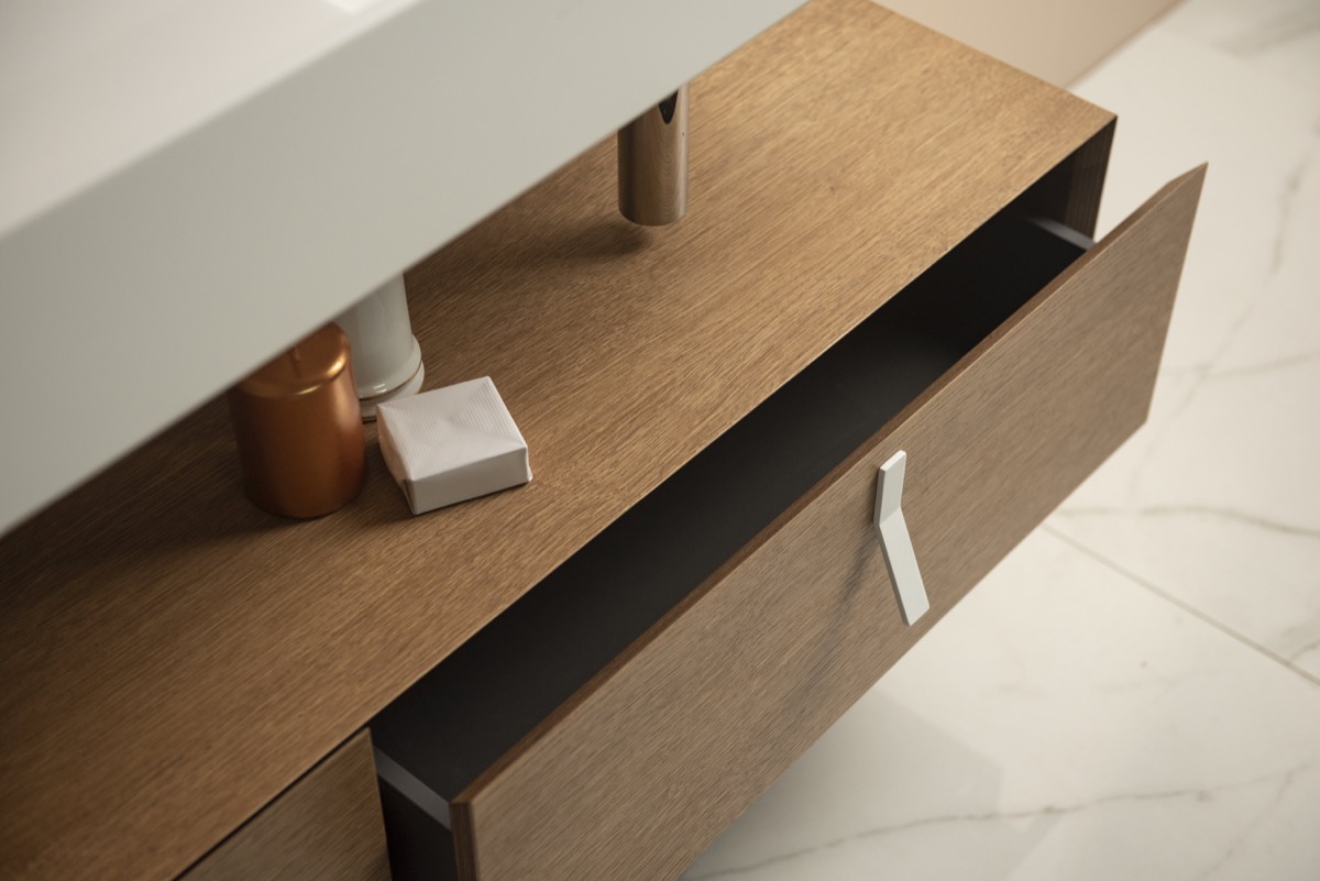 La colección Step está disponible en una escala de medidas que va de los 90 cm a los 220 cm, con dos alturas posibles. Esta flexibilidad permite integrarlo en ambientes compactos o en baños amplios, siempre manteniendo su elegancia característica.